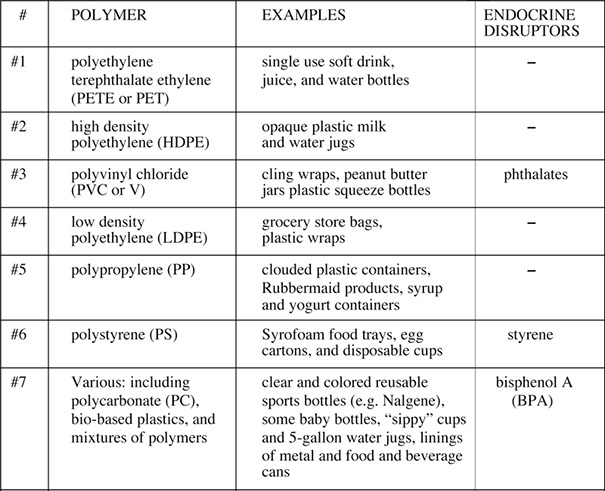 What to do: Numbers 1,2 4, and 5 are least harmful. All the rest – 3, 6, and 7 have negative bio-effects. Sometimes plastics don’t have a number, instead have an abbreviated name. See the table below - it should be helpful.
